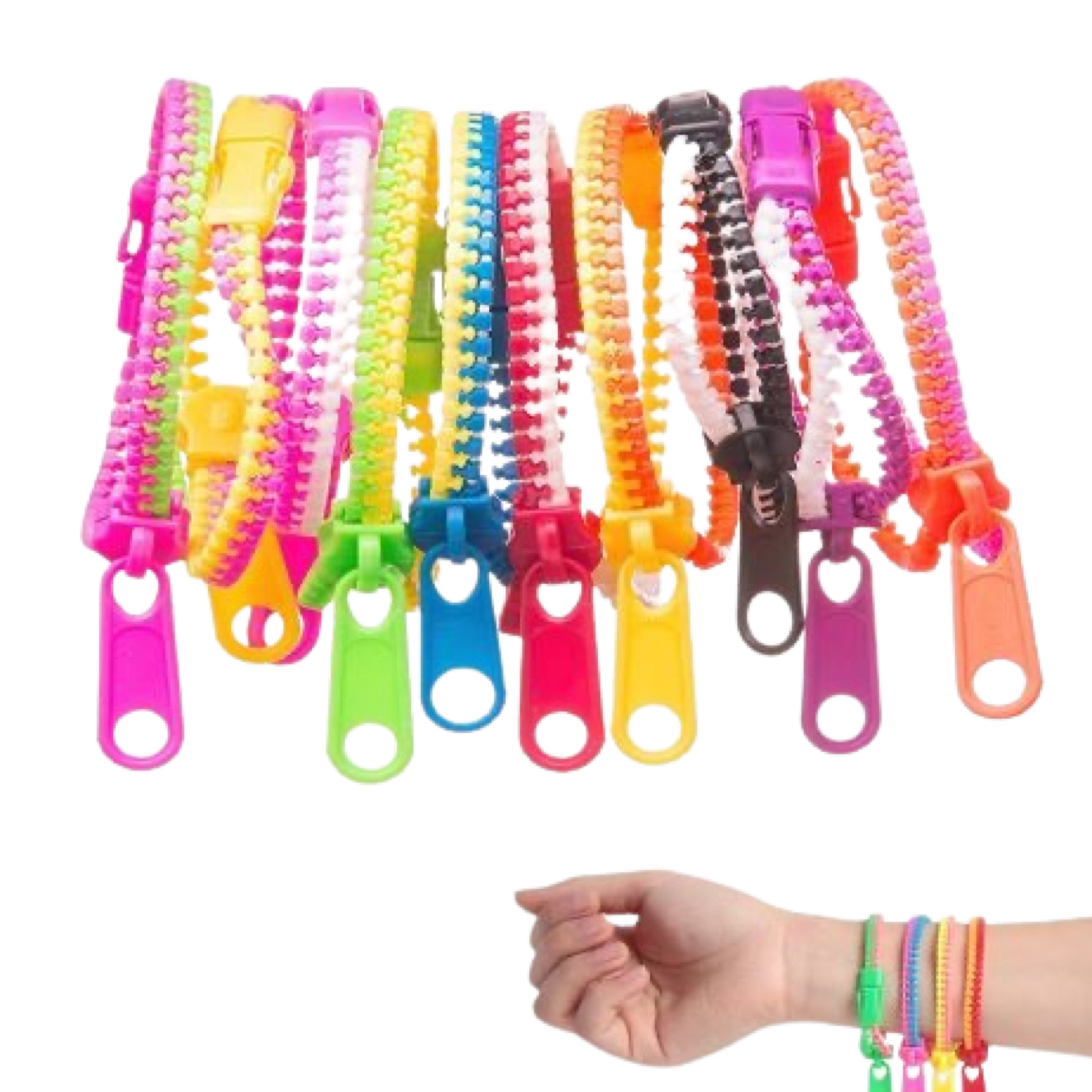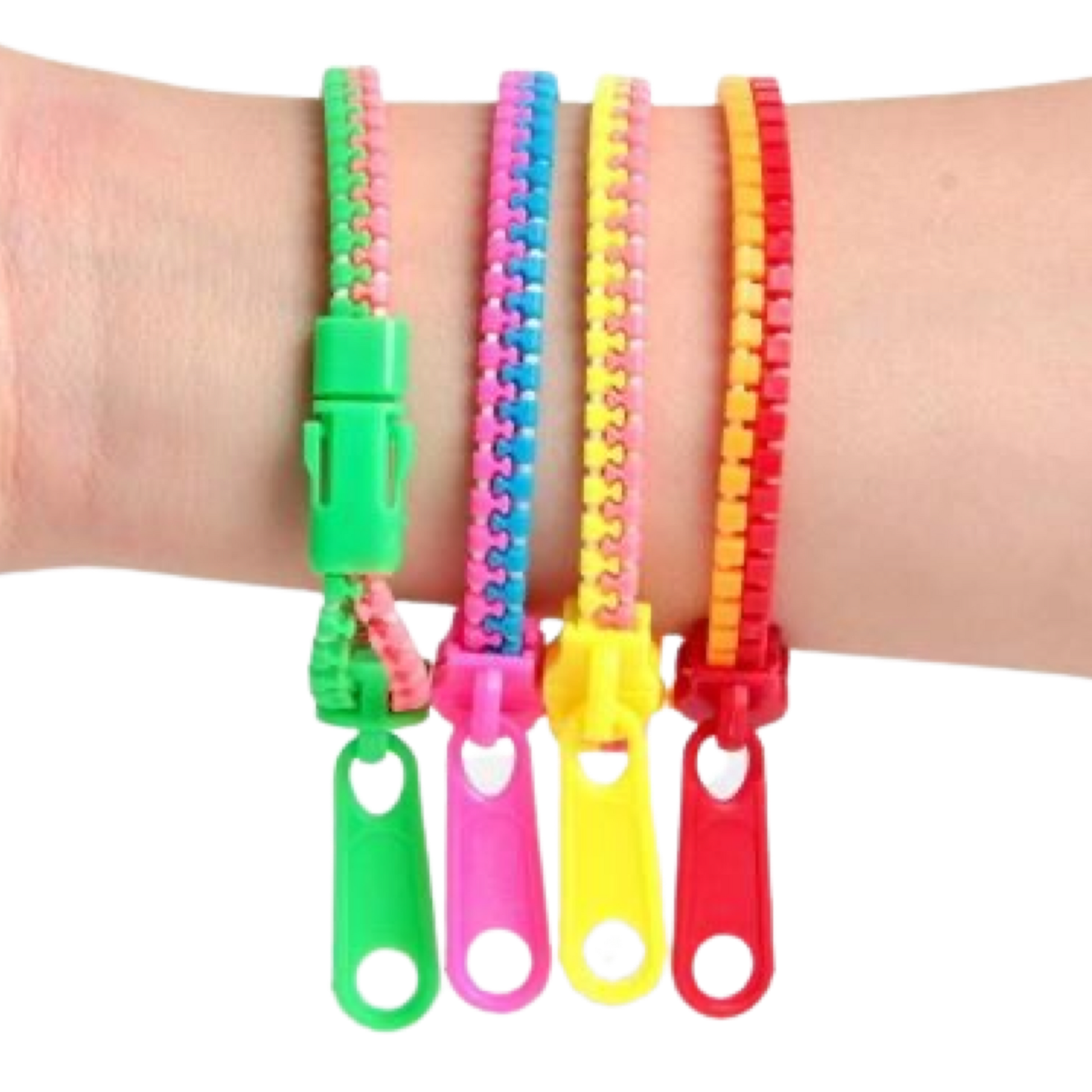 • Bright color zipper bracelets. Each measures 7.5 inch long, right size for most kids, color is randomly sent.