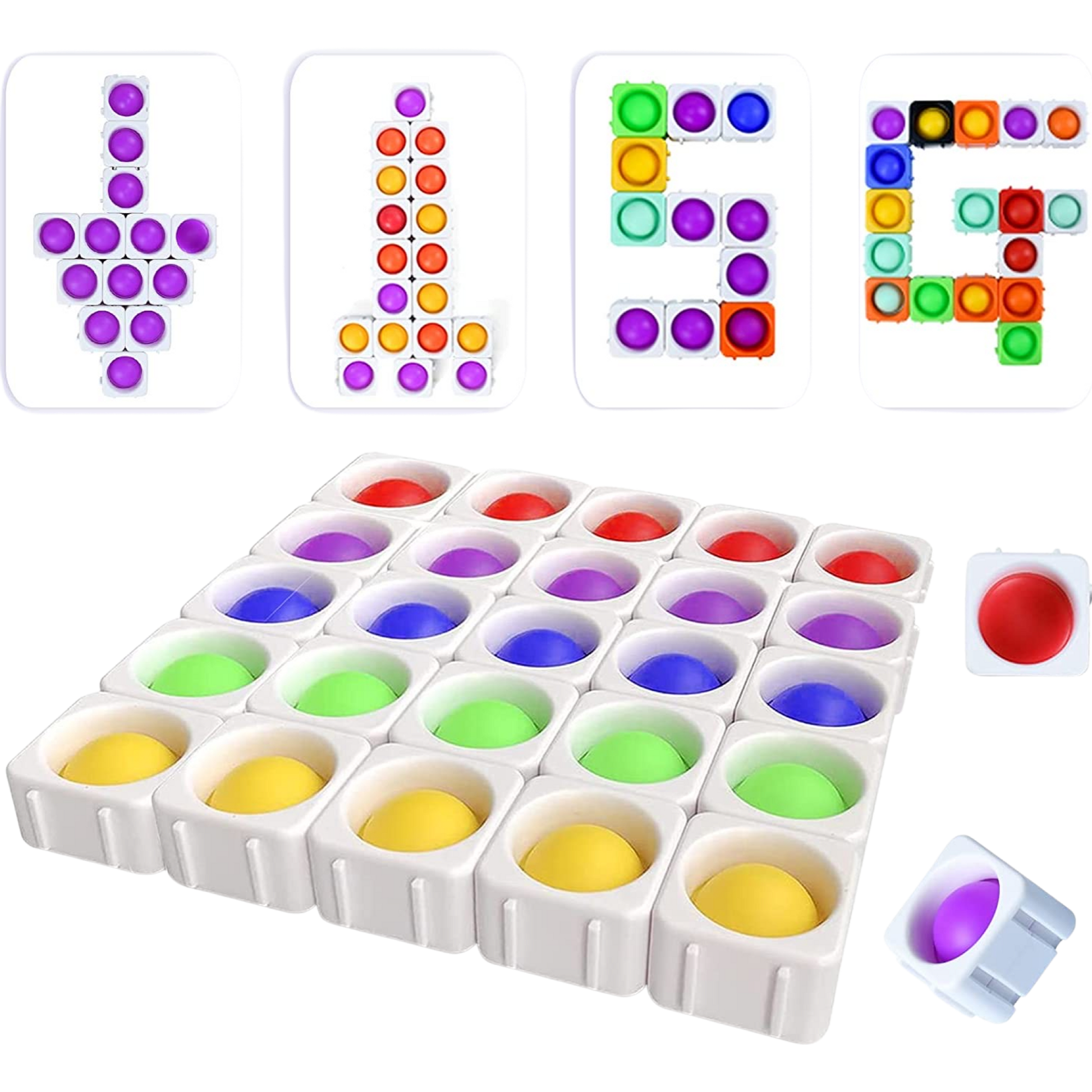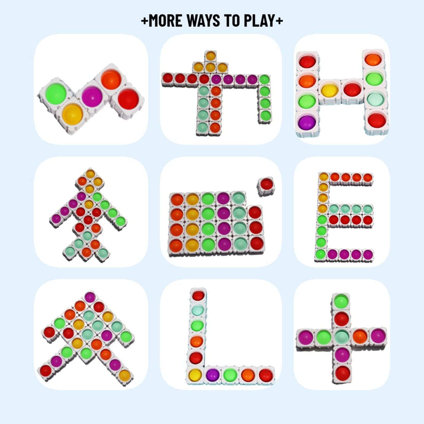 Use our popper block fidget toy to create different shapes using your imagination! Just press the pop bubbles down and they make a fun popping sound!